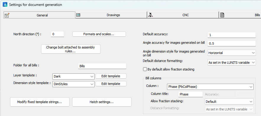 These options allow you to configure the bill columns used in the regular Bill of materials but also in the bill tables that are shown on all 2D sheets.