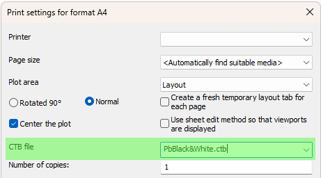 Whenever a sheet is printed with a Parabuild, AutoCAD, or BricsCAD command we have the option to choose a CTB file :