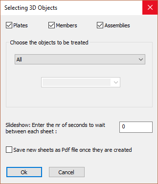 Before generation of the 2D sheets you will be prompted to select which 3D objects are to be processed.