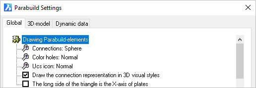 Save proxy data so that Parabuild objects become visible in plain AutoCAD/BricsCAD: This option allows the 'Proxy' details of a 3D-drawing to be saved.