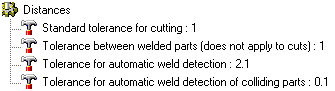 Tolerance between welded parts (does not apply to cuts): The distance (gap) that should be generally applied between welded parts.