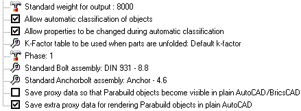 Standard weight for output: This value is the default weight that Parabuild should assume for objects that have no material assigned. The default value is set at 8000 kg/m³ - which is the approximate value for 1m3 of steel (7860 kg/m³).