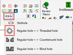 With this command you can convert a regular hole into a threaded hole and vice-versa. For illustration purposes, extra lines will be added to simulate the thread of the hole.