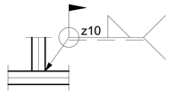 - Weld size - With the ISO system, the weld size is placed to the left of the weld symbol and is preceded by the letters: (z) / (a) / or (z) - depending on whether the leg length or throat size is to be specified. Unless otherwise instructed, it is usually the leg length that is specified, in which case only the (z) box needs to be added. If the throat thickness is to be specified, only the (a) box needs to be added.
