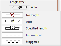 - Intermittent staggered weld symbol - this will be added automatically when the Staggered option is activated in the Length type drop-down options menu