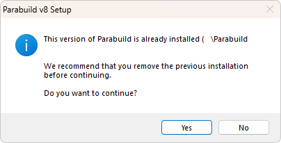 When the installation of a second Parabuild is attempted, the following message is displayed :