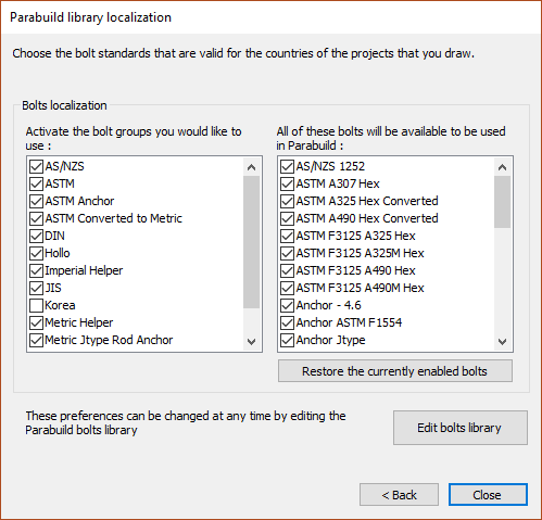 Click Next to open the bolt library localization