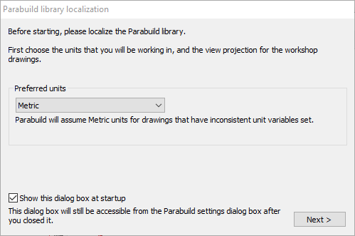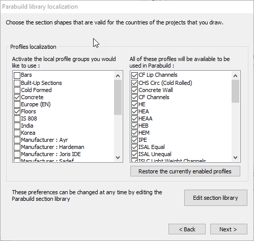 Click Next to open the Parabuild Profile library localization.