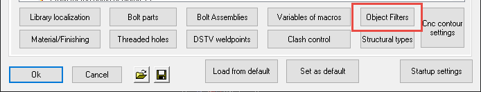 The CNC contour settings for example also use filters to assign different contour options to the type of part.