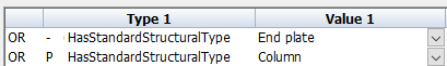 When Type 1 is IsPlate, then the available options in Type 2 will only contain UserValue as a valid option. The value 2 column hereafter will also be limited to the values Yes and No in this case.