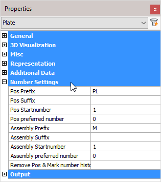 Position: * The number automatically given to elements by Parabuild. Elements that are the same, (same dimensions, holes, sections) are given the same position number. These positions are partially adaptable with prefixes and suffixes, see Number settings.