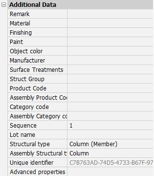 Unique Identifier: The Unique identifier is allocated by Parabuild, or received from a CIS/2 or Ifc file import. This ID is necessary for uniquely identifying parts when importing/exporting parts, so that the parts can be modified instead of being re-imported each time a new version of an Ifc file is imported. This identifier can also be used to find a part.