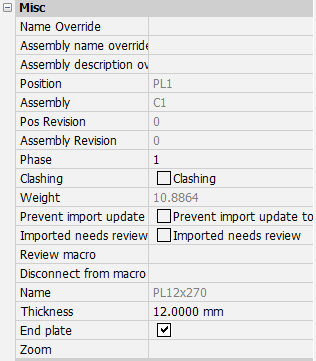End plate - This enables or disabled the end-plate feature, which will trigger an extra section view on assembly shop drawings. This is explained in more detail in the Set as End-Plate topic.