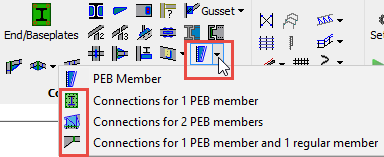 The commands can be categorized into 2 categories : Drawing PEB members and Drawing connections between PEB members.