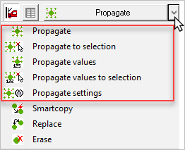 Propagate value options - These options only apply when the Propagate values (to selection) action was performed