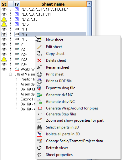 Edit sheet - The sheet will be opened for editing (this is the same as double-clicking on the sheet in the list).