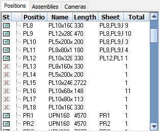The Tabs: Positions / Assembles / Cameras - these tabs provide a way to filter the bottom list on the part type