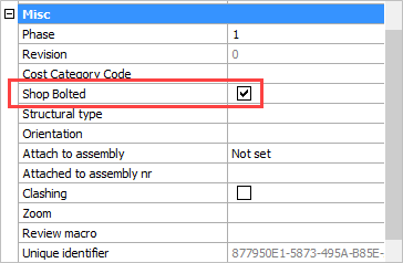 By default, all bolts are designated as 'Site Bolts'. To convert them to 'Shop Bolts', one can use the Bolt properties panel :