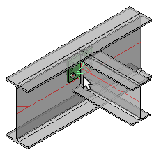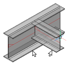 In this example the first base profile was selected on another spot, on the other side of the upper flange. The result is that the bent plate is also placed on that side of the flange. The bent plate was mirrored over 1 axis.