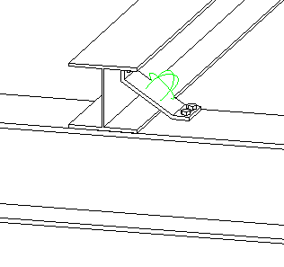 In this scenario the first base profile was selected on another spot, on the other side of the upper flange. The result is that the bent plate is also placed on that side of the flange. The bent plate was mirrored over 1 axis.