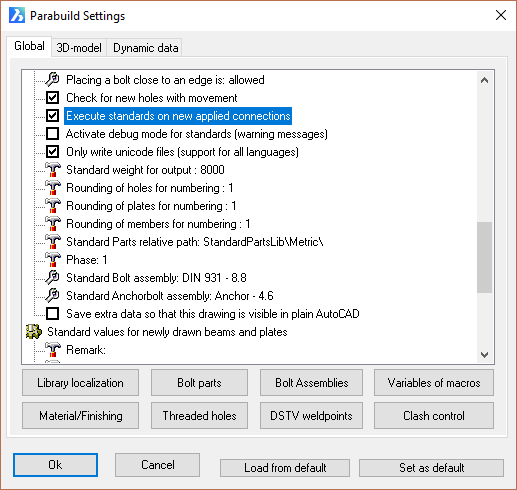 It is important to know that the standard system does not carry out an analysis of the structure. It is only a tool to automate repetitive modifications. To use the standards you do not need to do anything; initially they are activated for you and changes are applied to new connections that you apply.