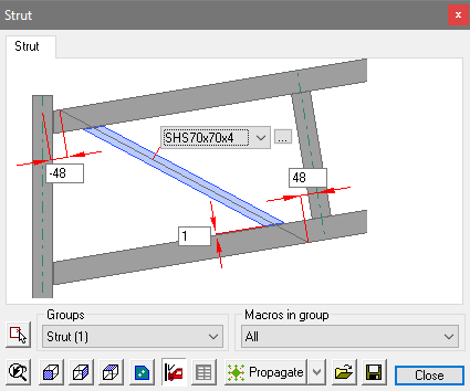 The strut will be placed accompanied by the macro edit dialog