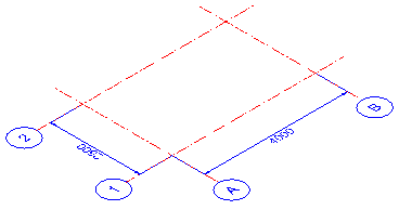 Being a very simple structure we'll establish a 2 x 2 grid, which is 4000 in the X direction, and 2500 in the Y direction - It will be drawn on the datum level WCS 0 (See The Coordinate System)