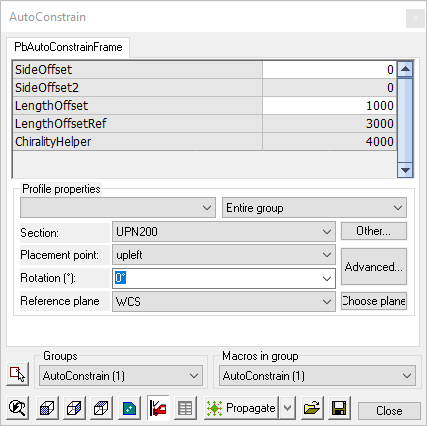 At any time, profiles placed using the Context modeler may be edited - this includes the profile type and size, its location, and its orientation. This is done by double-clicking the selected profile to open the Auto Constrain dialog.
