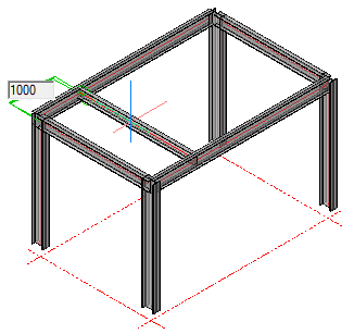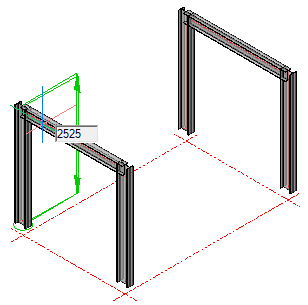 and select Draw Framing. Place the mouse pointer between the outer beams on the X axis - the beam will be shown hanging from the pointer between the outer beams - moving the mouse pointer will display the current position from its grid reference point. Set the position at 1000 mm from the A grid line.