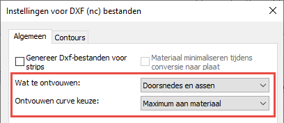 - De volgende nieuwe Dxf-opties specifiek voor het uitvouwen zijn nu beschikbaar :