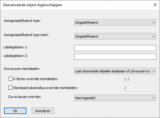 - De Geavanceerde eigenschappen van het to ontvouwen 3D onderdeel heeft enkele ontvouwingsopties :