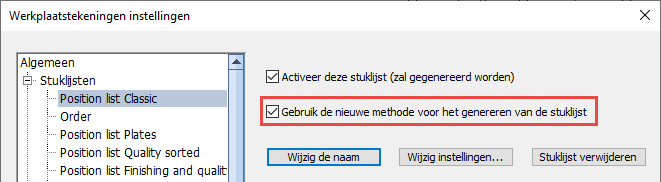 Vanaf versie 7 is het mogelijk om de nieuwe generatiemethode voor elke afzonderlijke stuklijst te activeren.