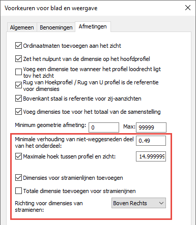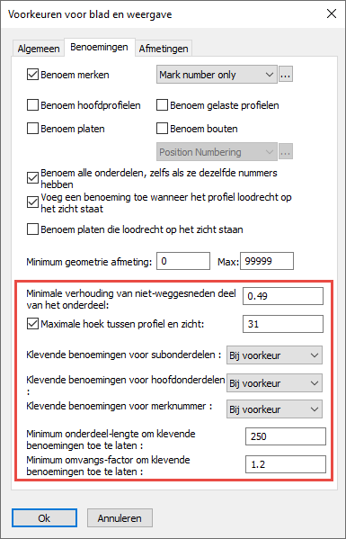 - Er zijn instellingen in de werkplaatstekeningen die van invloed zijn op hoe de lassymbolen worden getekend en gegroepeerd op de 2D-tekeningen.