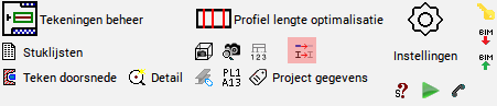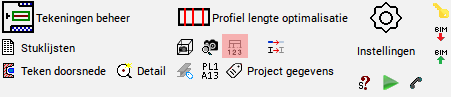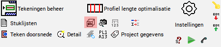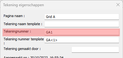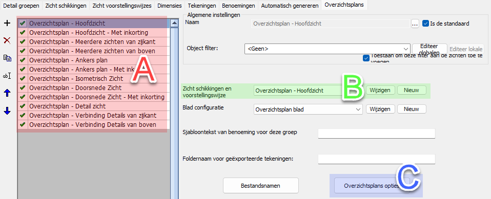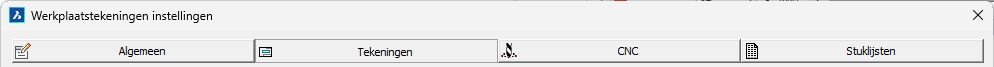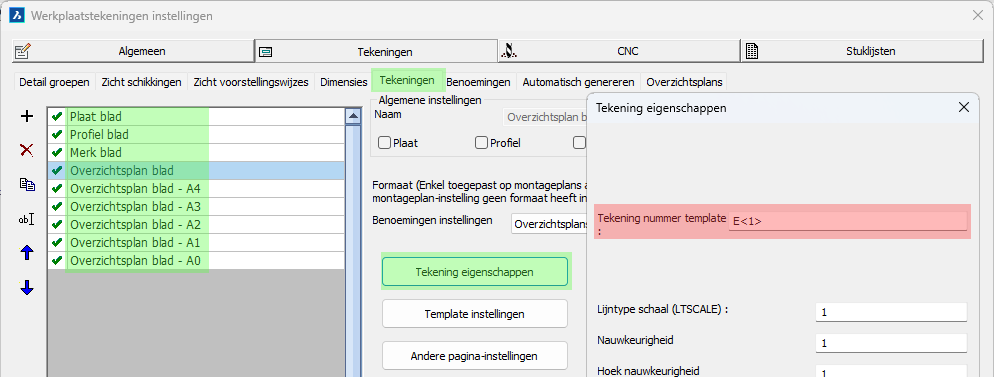 Het tekeningen tabblad bevat alle instellingen voor de werktekeningen en overzichtsplans.