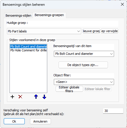 Als zowel het onderdeeltype als de objectfilters overeenkomen, dan wordt deze groep gebruikt voor het onderdeel/merk.