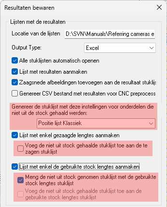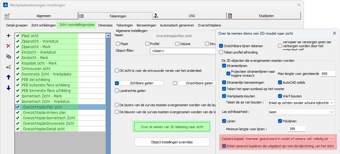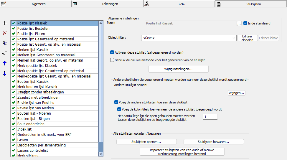 Merk op dat de volgorde van de items op deze lijst een grote invloed heeft op het resultaat van het genereren van werktekeningen.
