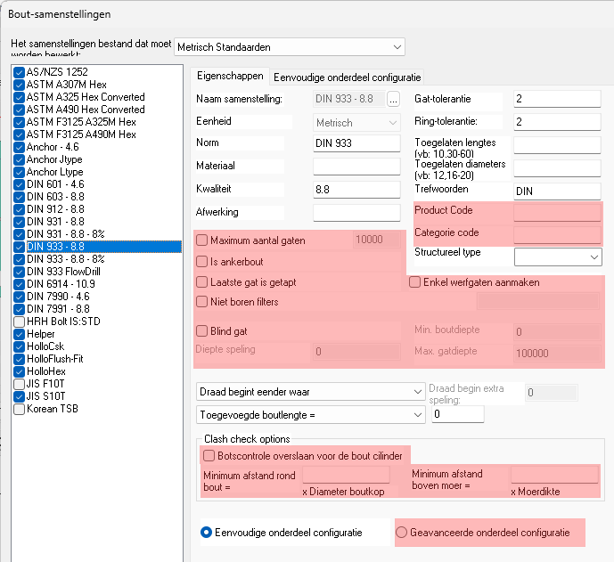 Om deze reden is het belangrijk om voor elk type: plaat, profiel of samenstelling een 'Catch all' groep te hebben.