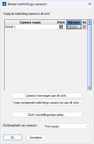 Zicht voorstellingswijze - Dit verwijst naar de voorstellingswijze-instellingen die voor dit zicht moeten worden gebruikt, zoals hoe gaten moeten worden weergegeven, verborgen lijnen wel of niet moeten worden ingeschakeld, kleuren voor lijnen en nog veel meer. Klik op Wijzigen om deze instellingen te bekijken en/of aan te passen.