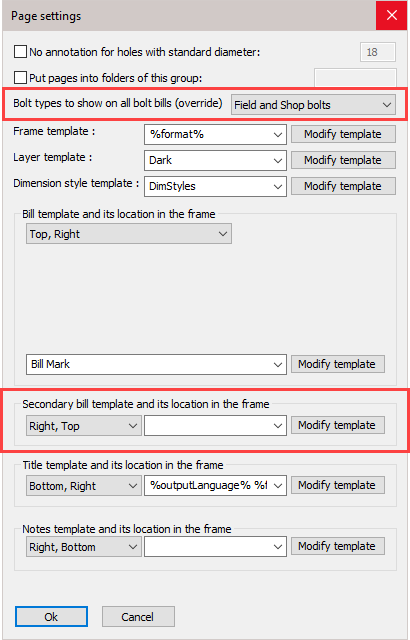 A new secondary bill can be added to the shop drawings. By default, this is a bolts bill on the assembly drawings.