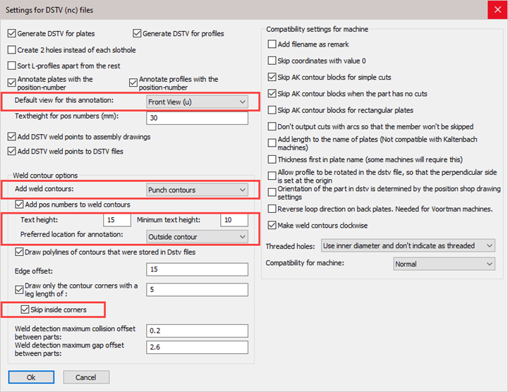Add weld contours : You can now choose between either punch, powder, or both. If you choose both, then all of the contours are added double to the dstv file.