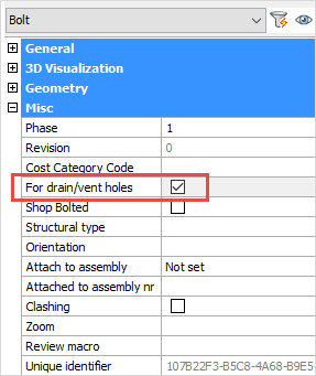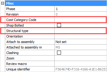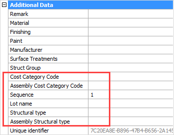 Cost Category code : These codes are usually determined while a quote for the project is made. This code can then later be assigned to the 3D model when the project was ordered. This way the parts can be traced from estimation to production and to completion inside ERP/MIS software. This value is exported to KISS files. (PbColCostCategoryCode and PbColAssemblyCostCategoryCode)