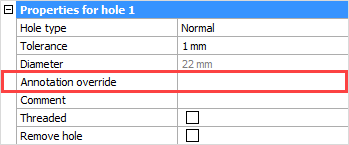A new property was added for holes, which allows you to set a custom annotation text for a hole.