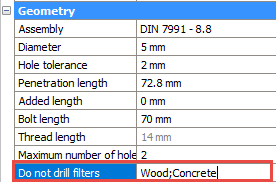 New bolt property : Do not drill filters