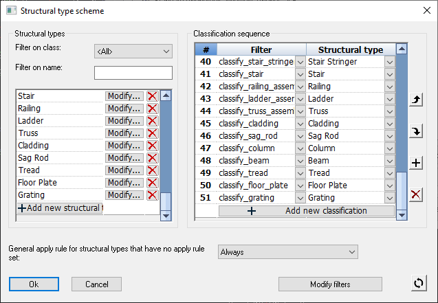 - Automatically assigning properties to the part. For example, assigning numbering prefix B for Beams and C for columns.