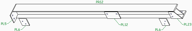 An example of brackets where match lines are transferred to the top flange automatically. There are also sub parts that have contours for other sub parts, this is optional and can be turned off. |