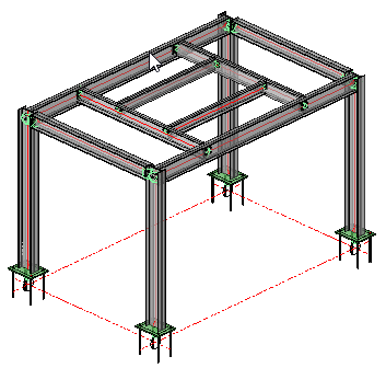 This completes the first exercise, at this point we have produced a working model of a simple post and beam structure using both Model Lines and Parabuild's Context Modeler. In preparing this model, we have added base plates and connections, providing and introduction into the use of Parabuild's macro edit dialog system.