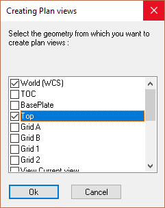 For the purposes of this exercise, select plan views for: World (WCS) and Top. In the following Format and scale dialog, select the drawing format to A1 and the scale to 1:20.