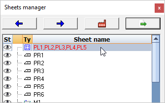 The Position and assembly sheets may be reviewed by double clicking the item in the top list of the Sheets Manager, or alternatively, you may use the left / right arrows to scroll though the drawings.