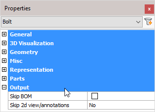 Skip BOM: If this property to ‘Yes’, this element will not appear in the BOMs
