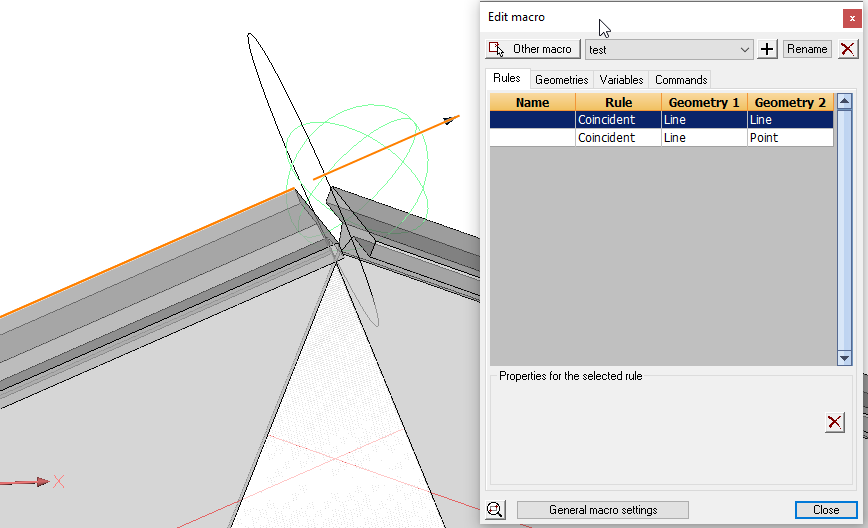 If the edge of the second profile was chosen and the profiles are not perfectly aligned, the macro will fail to calculate the plane's position.